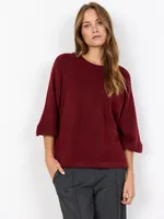 Toppen har en rak, något boxig passform med nedhasade axlar och generöst skurna halvlånga ärmar som ger ett avslappnat intryck. Den runda halsringningen gör den enkel att bära både ensam eller som del i en lager-på-lager-look. Kombinera gärna med jeans eller kjol, eller bär den ovanpå en skjorta för en mer preppyinspirerad stil.