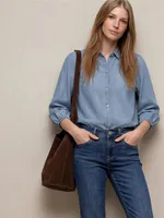 En stilren lyocellblus i avslappnad design med klassisk skjortkrage och 3/4-ärmar med elastiska muddar. Det mjuka materialet ger en skön och luftig känsla – perfekt för både vardag och arbete.