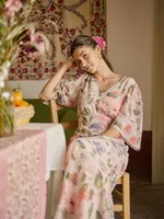 En elegant maxiklänning från Cream med avslappnad passform, smickrande V-ringning och vida ärmar till armbågen. Det lätta tyget ger en luftig och behaglig känsla – perfekt för varma dagar.