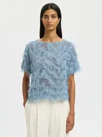 Elegant blus med fransar från Selected med båtringning och korta ärmar. Relaxed fit som passar både vardag och fest.