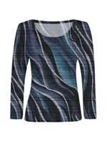 Tunn långärmad tröja med ribbad struktur och vågigt mönster. En lätt och stilren topp som passar året runt.