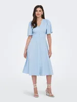 Midiklänning med v-ringning, 2/4 ärmar och knapp- och hysklåsning. Regular fit. CHAMBRAY BLUE