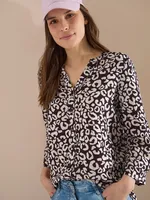 Blusen har 3/4-långa ärmar som gör den perfekt för både varmare dagar och lager-på-lager-styling. Det iögonfallande animal printet ger plagget en trendig och livfull känsla som enkelt lyfter din outfit.