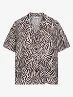 Mönstrad skjorta från Freequent med zebraprint, lös passform och korta, vida ärmar. En stilren modell med V-ringning och klassisk krage.