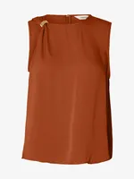 Elegant topp från Selected Femme i vävd satin som kombinerar tidlös elegans med moderna, stilrena detaljer. Den varma nyansen Potters Clay ger ett sofistikerat och jordnära uttryck som gör toppen enkel att styla för både vardag och fest.