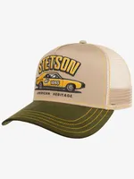 Truckerkeps från Stetson med racinginspirerad design. Böjd skärm, strukturerad bomullsfront och ventilerande mesh baktill. Justerbar snapback och mjukt svettband för hög komfort hela dagen.