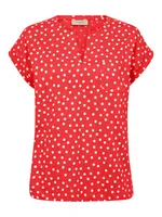 Topp med prickigt mönster, kort ärm och v-ringad slits – en lekfull vardagsfavorit med bröstficka och avslappnad passform. BITTERSWEAT / DOT