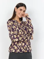 Blus i ekologisk bomull och viskos med V-ringning, lång ärm och blommigt mönster.