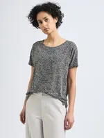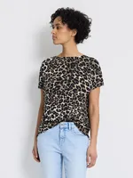 Uppgradera din basgarderob med denna trendiga mönstrade topp som kombinerar stil och komfort på bästa sätt. Toppen är tillverkad i en mjuk och stretchig viskoskvalitet som känns behaglig mot huden. Den har en klassisk rund halsringning och korta ärmar, vilket gör den idealisk för både vardag och avslappnade tillfällen. Det tidlösa printet ger outfiten en djärv och modemedveten känsla – matcha den enkelt med jeans, kjol eller kostymbyxor för en komplett look. En mångsidig favorit för dig som gillar djurmönstrade plagg med karaktär.