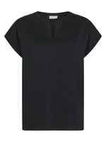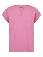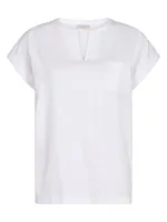 Enkel och stilren topp med v-slits i halsen, korta ärmar och bröstficka – en perfekt vardagsbas med avslappnad passform. BITTERSWEAT