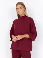 Blus i mjuk modalblandning med hög hals, 3/4-ärmar och avslappnad passform. Perfekt för både vardag och kontor.