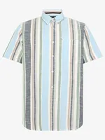 Ge din sommargarderob en uppgradering med denna randiga kortärmade herrskjorta i 100% bomull. Den är tillverkad i ett mjukt och svalt vävt tyg som ger maximal komfort under varma dagar. Det färgstarka randiga mönstret skapar ett avslappnat men välklätt uttryck som passar både till vardag och semester.