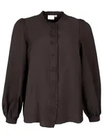 Feminin blus i svart med volangdetaljer och knäppning framtill. Långärmad modell med tidlös och elegant känsla.