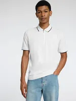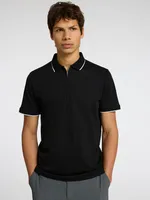 En tidlös och bekväm polotröja med korta ärmar, ribbade manschetter och en praktisk kvartslång dragkedja. Perfekt för vardagligt bruk och enkel att kombinera.