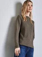 Denna strukturmönstrade tröja från Street One är ett mångsidigt och stilfullt tillskott till din vardagsgarderob. Designen med turtleneck ger en elegant touch, medan det subtila strukturmönstret lyfter plagget från det enkla till det sofistikerade. Den är tillverkad i en mjuk och stretchig materialmix som erbjuder en utmärkt passform och hög komfort hela dagen. Ett perfekt basplagg för att skapa både avslappnade och mer uppklädda looks – bär det som det är eller matcha med en blazer för en chic finish.