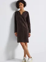 Stilren velourklänning från Street One med split neck, knappar vid ärmslut och praktiska sidfickor. Knälång passform i mjuk och behaglig kvalitet – perfekt för en feminin vardagslook.