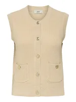 Stickad väst från JDY i bomullsblandning med knappar och rund hals. Perfekt layering-plagg för höst och vinter. WHITECAP GREY.