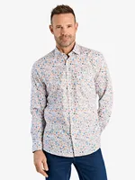 Denna skjorta från Murrey kombinerar klassiskt herrmode med en stilfull twist. Det småblommiga all-over-printet i rosa och blå nyanser mot en vit botten ger ett elegant och personligt uttryck. Skjortan är designad med klassisk krage, knappstängning framtill och långa ärmar, vilket gör den lätt att matcha för olika tillfällen. Bär den tillsammans med chinos eller jeans för en avslappnad vardagslook, eller kombinera med kavaj för en mer sofistikerad stil. Ett mångsidigt tillskott i garderoben för den stilsäkra mannen.