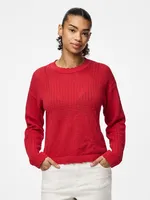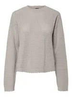Upptäck den perfekta kombinationen av stil och komfort med denna stickade tröja. Den har en tidlös rund hals, långa ärmar och ribbade muddar för en snygg och genomtänkt design. Det mjuka stickade materialet säkerställer en behaglig passform och gör tröjan till ett mångsidigt plagg i din garderob. Oavsett om du stylar den för en avslappnad vardagslook eller en trendig outfit, är denna stickade tröja ett självklart val för säsongen.