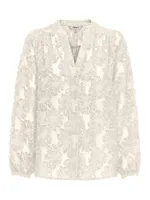 Elegant skjorta med jacquardmönster, ståkrage och oversized passform – perfekt för både vardag och jobb. EGRET