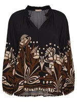 Charmig blus från Marta du Château med vackert mönster, V-ringning och volangdetalj. Löst sittande med längre bakstycke – enkel att styla från vardag till fest.
