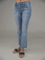 Trendiga ljusblå jeans med raka ben och råkantad fåll. De har dekorativa framfickor och en bekväm passform som ger en avslappnad men stilren look. LT DENIM