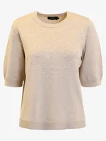 Mjuk och finstickad pullover från Brandtex i elegant viskosblandning. Kort ärm, nätta muddar och stilfullt mönster fram på bröstet – enkel att styla och perfekt för varje tillfälle.