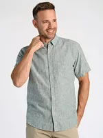 Kortärmad skjorta i mjuk bomulls- och linnemix med knäppning framtill, button down-krage och diskret randigt mönster – perfekt för sommaren. FADED GREEN STRIPE