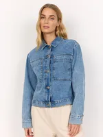 Denna stilrena och moderna denimjacka är ett perfekt tillskott till garderoben för en avslappnad men trendig look. Tillverkad av en bekväm blandning av bomull och återvunnen polyester, erbjuder jackan både hållbarhet och komfort. Den har en klassisk skjortkrage, knappstängning och två praktiska framfickor som förstärker den tidlösa designen. Den croppade passformen ger en ungdomlig och fräsch känsla, vilket gör den enkel att matcha med olika outfits. Bär den över en mönstrad t-shirt och kombinera med linneshorts för en stilren och somrig look.