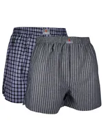 Uppdatera din underklädesgarderob med detta 2-pack boxershorts i en grårandig och en marinblå-vit rutig design. Tillverkade i mjuk bomullsblandning för högsta komfort. GRÅ/SVART