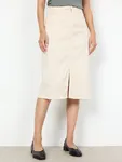 En modern denimkjol med klassisk femficksdesign, midi-längd och en stilfull frontslits för en trendig look. CREAM