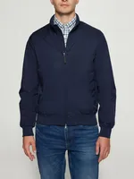 En stilren och sportig jacka i 100% polyester. Lätt och bekväm med ribbade muddar och en praktisk dragkedja för en avslappnad men sofistikerad look. NAVY